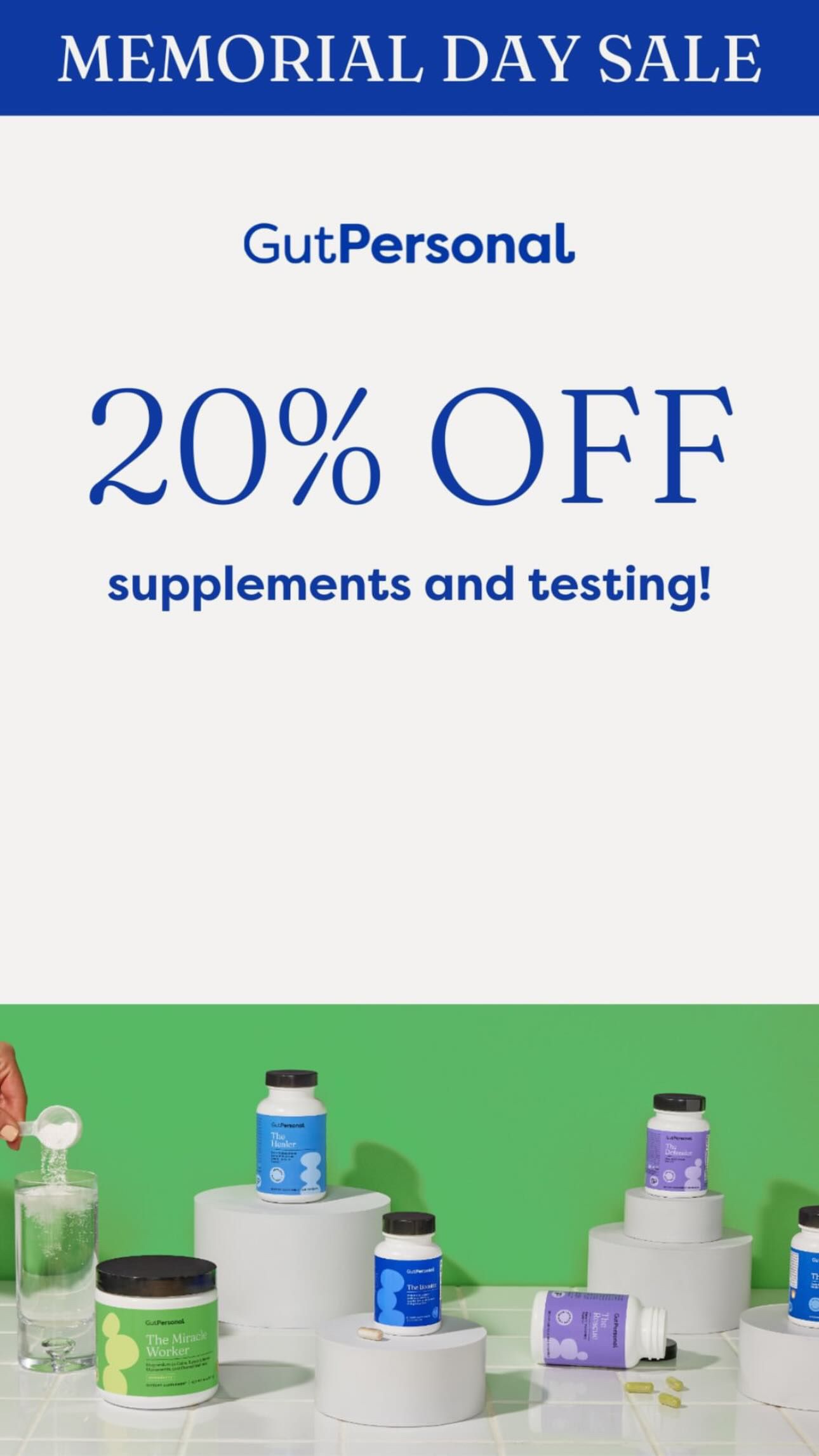 In other postpartum news, I fell off of taking my supplements for about a week but I got back to taking them this week. Just in time for GutPersonal’s Memorial Day weekend sale. This weekend my code “BLOOM” gets you 20% supplements, protocols, and testing (normally 10%). I restocked on The Healer+ probiotic, omegas, and The Miracle Worker Powder (magnesium glycinate).