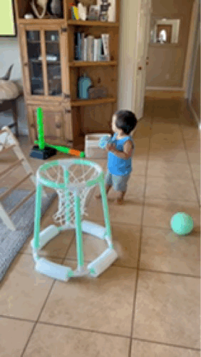 ICYMI, Gabe bought a floating basketball hoop for our little pool, but it has since moved into our house. We play with it regularly, though, so I guess it fits here. In all seriousness, it’s a great height for Shay to play with, and he loves taking every ball he owns and dunking it- it’s so cute to watch!